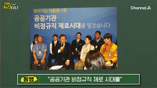 감사원은 문재인 정부에서 고용 통계도 왜곡했다고 보는데요. 문재인 대통령이 중요하게 여긴 또 하나의 경제 지향점이 ‘비정규직 제로 시대’입니다. 비정규직을 없애겠다는 거죠. 그래서 취임하자마자 첫 번째로 간 곳이 바로 인천공항공사였습니다. 거기 가서 “공공기관 비규직 제로 시대를 열겠습니다”라고 했죠.