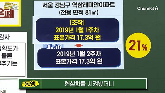 표본 늘리고, 가격 현실화하면 어떻게 되겠습니까? 실거래가가 더 많이 반영되는 거니까 표본가격이 오르겠죠. 2019년 1월 2주차 조사 때, 표본가격이 14억 2천만 원이었던 서울 강남구 역삼래미안 아파트 81㎡의 가격을 현실화시키니 17억 3천만 원으로, 무려 21%가 뛰어버렸습니다. 이대로 발표하면, 지금까지 표본가격이 엉망진창이었고, 집값 엄청 올랐다고 또 비판받겠죠.