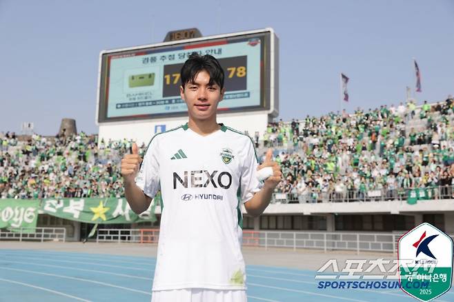 10경기 만에 커리어하이를 달성한 상황, 올시즌 공격 포인트 목표를 묻자 전진우는 "매경기 1골, 1어시스트, 공격포인트를 하나씩 하고 싶다. 전북이라는 팀에서 매경기 포인트를 하고 싶다"고 답했다.