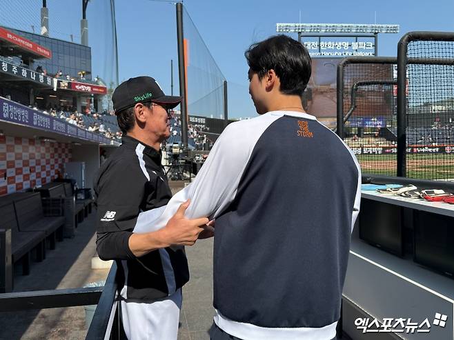 엄상백은 전날 투구를 하다 팔이 불편한 듯 몇 차례 팔을 풀기도 했는데, 이강철 감독은 이 장면을 돌아보며 "내려가면 안 되는데, 그랬다"고 털어놓기도 했다. 옛 제자에 대한 애정이 고스란히 느껴지는 말이었다. 이내 엄상백에게 대전에서의 생활을 물어본 이 감독은 "그래, 잘 먹고 잘 살아"라고 말하며 웃었다. 가장 단순하면서도, 진심이 담긴 격려였다.