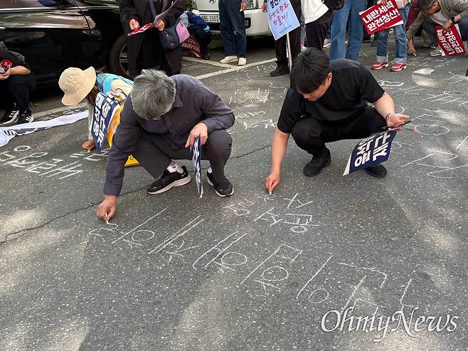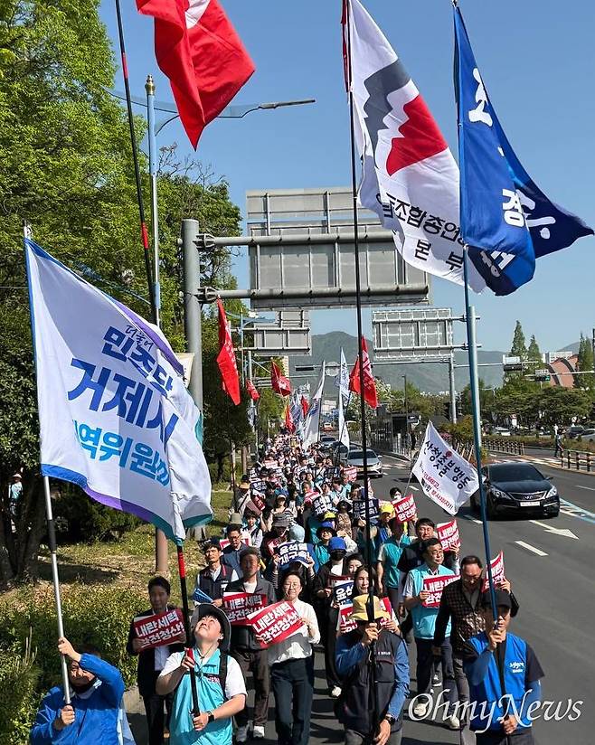 이들은 이어 국민의힘 경남도당 앞까지 거리행진해 마무리 집회를 열었다.