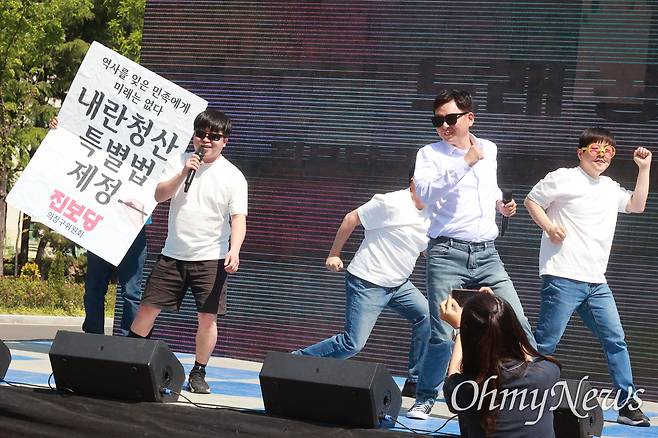허 의원은 "국민은 여전히 불안하다. 이 불안감을 완전히 떨쳐내려면 내란세력의 뿌리부터 뽑아내서 완전히 박살을 내야 한다"라며 "그것은 우선 오는 대통령선거에서 단합해 압도적으로 승리해야 한다. 야4당 동지들이 지난 추운 겨울 동안 광장에서 투쟁해서 뭉쳤듯이, 다시 내란세력 완전종식을 위해, 새로운 대한민국을 위해 뭉쳐야 하고, 대오가 조금도 흐트러져서는 안된다"라고 했다.