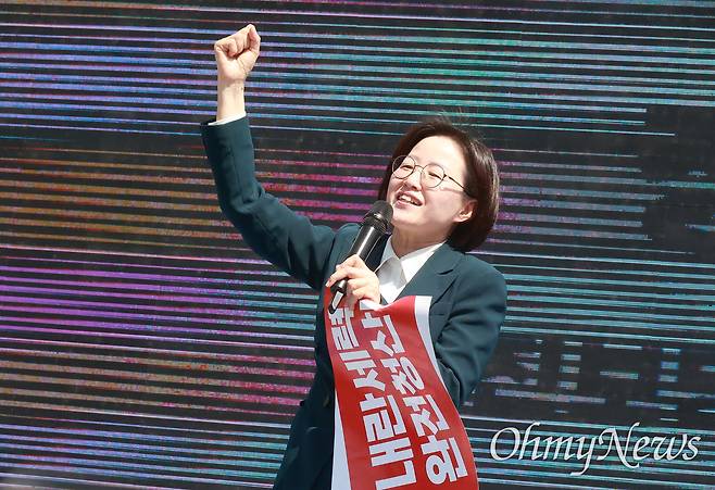 | ▲ 4월 26일 오후 창원운동장 만남의광장 앞 도로에서 “내란완전종식, 민주헌정 수호, 새로운 대한민국 건설, 경남 야4당 공동행동”에 이어 “내란세력 완전청산, 사회대개혁 실현 경남도민대회”가 열렸다. 정혜경 국회의원. |