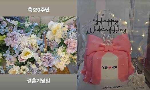 26일 한가인은 자신의 SNS 스토리에 "축! 20주년 결혼기념일"이라는 글과 함께 꽃과 케이크 사진을 게재했다.