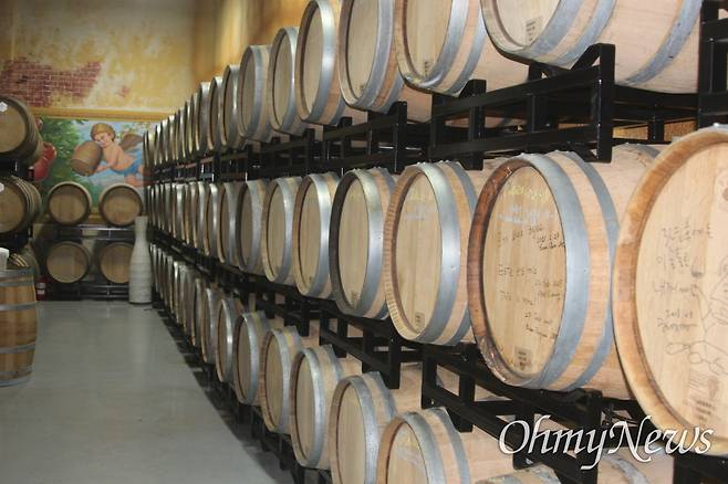 | ▲ 사과증류주를 숙성하는 오크통 |