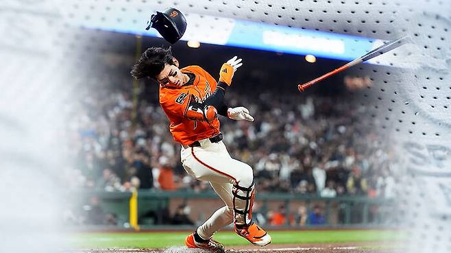 얼굴로 날아오는 공을 피하면서 방망이에 맞췄는데 심판진이 파울 대신 헛스윙이라고 판정해 버렸습니다.