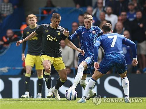 epa12056424 Cole Palmer of Chelsea on the ball during the English Premier League soccer match between Chelsea FC and Everton FC, in London, Britain, 26 April 2025. EPA/ISABEL INFANTES EDITORIAL USE ONLY. No use with unauthorized audio, video, data, fixture lists, club/league logos, 'live' services or NFTs. Online in-match use limited to 120 images, no video emulation. No use in betting, games or single club/league/player publications.