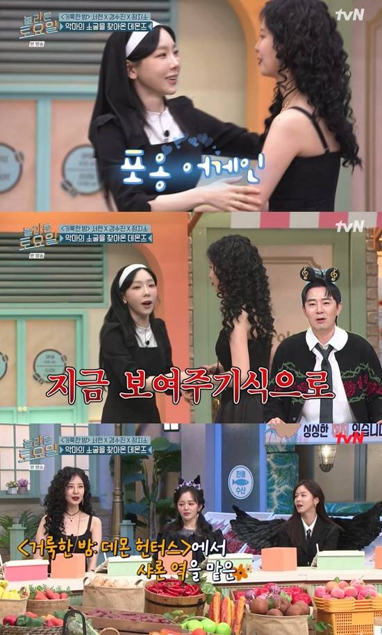 26일 방송된 tvN '놀라운 토요일'(이하 '놀토')에는 영화 '거룩한 밤: 데몬 헌터스'의 배우 서현, 경수진, 정지소가 게스트로 출연했다.