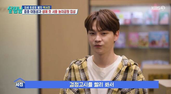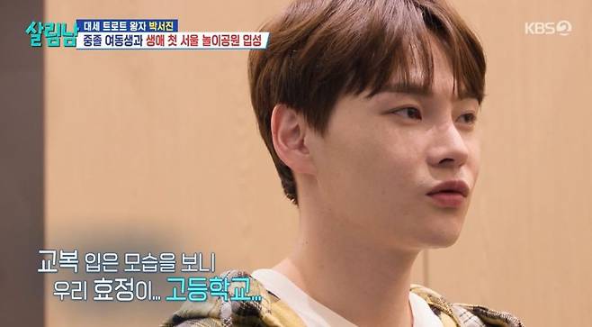 이날 교복을 차려입고 여고생의 풋풋함을 뽐낸 효정 씨에 박서진은 “교복 입은 모습이 안 어울릴 줄 알았더니 잘 어울리더라. 그 모습을 보더니 다시 학교는 못 다니더라도 검정고시를 빨리 봐서 고등학교 졸업이라도 했으면 하는 바람이 생겼다”며 오빠 마음을 전했다.