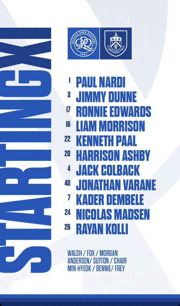QPR은 4-2-3-1 포메이션을 내세웠다. 콜리, 뎀벨레, 마센, 애슈비, 콜백, 바란, 팔, 에드워즈, 모리슨, 던, 나르디가 선발 출격했다. 이전까지 3경기 연속 선발 출전했던 양민혁은 벤치에서 대기했다.