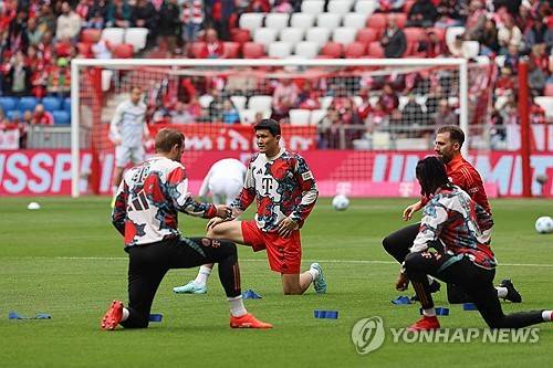 이날 홈팀 뮌헨은 4-2-3-1 전형을 내세웠다. 요나스 우르비히가 골문을 지키고, 요시프 스타니시치, 김민재, 다이어, 콘라트 라이머가 백4를 구성했다. 3선에서 알렉산다르 파블로비치와 요수아 키미히가 호흡을 맞췄다. 2선에 레로이 자네, 마이클 올리세, 세르주 그나비르가 배치됐다. 최전방 원톱 자리에 해리 케인이 이름을 올렸다.