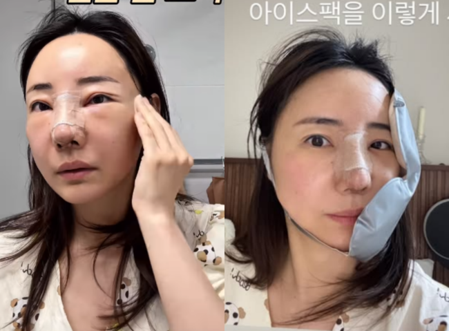 또 박혜민은 "코 수술은 아이스팩을 이렇게 세로로"라고 부기 관리 팁을 전했고, "부기템 빨. 미간 부기는 훨씬 좋아졌네"라고 부기가 많이 가라 앉은 상황을 알리기도 했다.