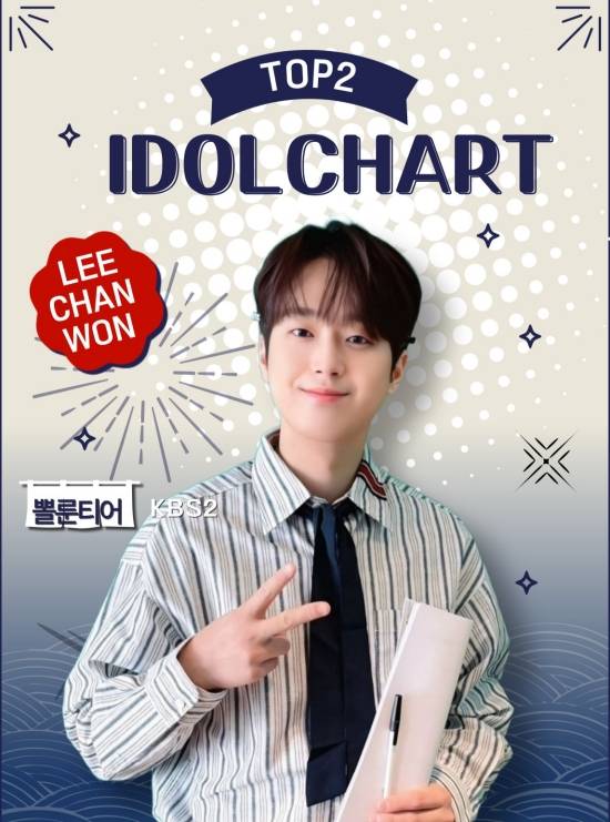 이찬원이 아이돌차트 평점 랭킹 2위를 차지했다.
