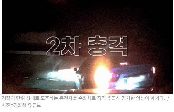 경찰이 만취 상태로 도주하는 운전자를 순찰차로 직접 추돌해 검거한 영상이 화제다.