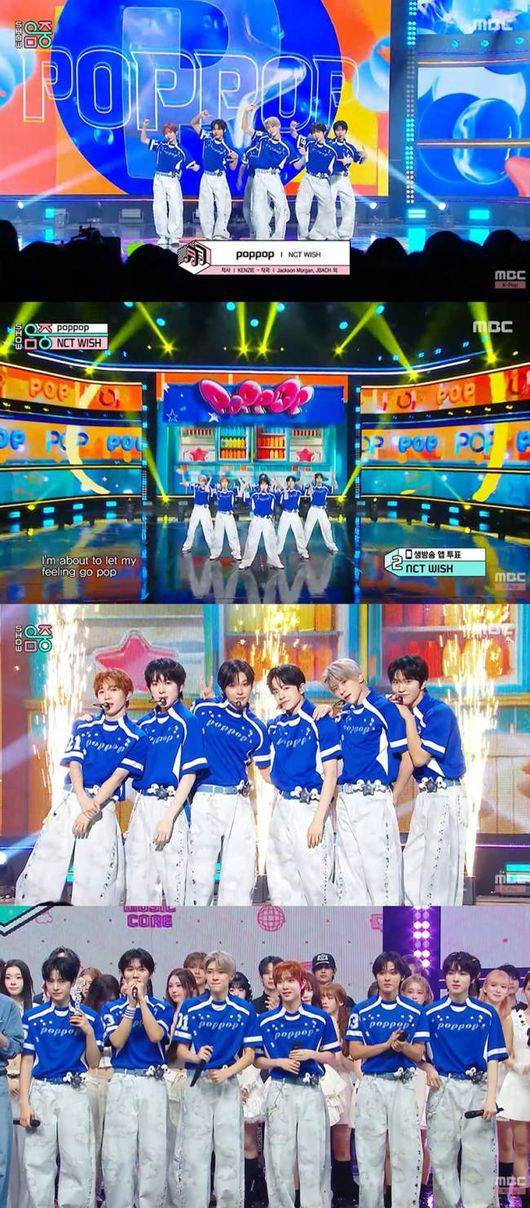 NCT WISH는 지난 26일 방송된 MBC ‘쇼! 음악중심’에서 두 번째 미니앨범 ‘poppop’의 타이틀곡 ‘poppop’으로 1위를 차지했으며, 이로써 케이블채널 Mnet ‘엠카운트다운’, KBS 2TV ‘뮤직뱅크’에 이어 음악방송 3관왕을 달성하는 기쁨을 누렸다.