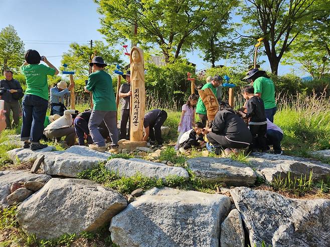 그러면서 "청양의 경우 장승과 솟대가 상징이기도 하다. (이번에 세운) 솟대의 이름도 '지천 사랑 수호 솟대'이다. 지천이 금강을 통해 서해바다로 영원히 흐를 수 있도록 기원하는 마음을 담아서 솟대와 장승을 설치했다"고 말했다.