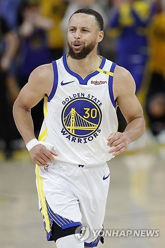 epa12057681 Golden State Warriors guard Stephen Curry reacts after shooting a three point basket against the Houston Rockets during the second half of the Western Conference First Round playoff game three between the Houston Rockets and the Golden State Warriors in San Francisco, California, USA, 26 April 2025. EPA/JOHN G. MABANGLO SHUTTERSTOCK OUT