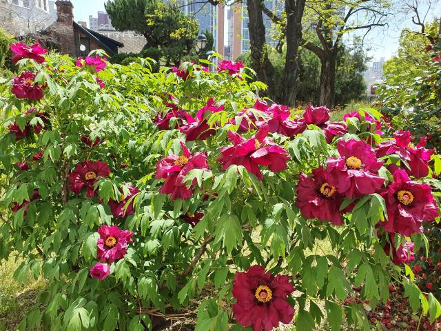영랑이 애달프게 노래한 모란꽃이 절정이다. 국립대구박물관의 화계(花階), 대구수목원의 전통정원, 대구 도심의 청라언덕, 경북 안동시 도산서원과 하회마을 등 곳곳에 진홍색 큰 꽃잎에 둘러싸인 노란 꽃술들의 은은한 향기가 상춘을 유혹한다. 올해는 꽃샘추위 탓인지 개화가 늦었지만 아담한 키에 풍성한 꽃잎의 자태로 풍기는 농염(濃艶)한 아름다움은 가히 '꽃의 지존(至尊)'이라고 부를만하다.