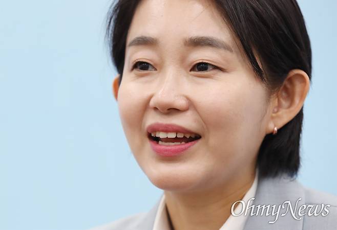 | ▲ 김재연 진보당 대선 후보가 23일 오후 서울 영등포구 국회 본청 진보당 회의실에서 오마이뉴스와 인터뷰를 하고 있다. |