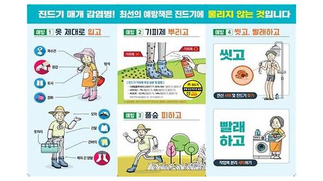 경북도 관계자는 "논·밭 작업, 등산, 골프 등 야외활동을 할 때 진드기에 물리지 않도록 주의하고, 야외활동 이후 2주 이내 고열·구토 등 증상이 있으면 즉시 의료기관에서 진료받아야 한다"고 당부했습니다.