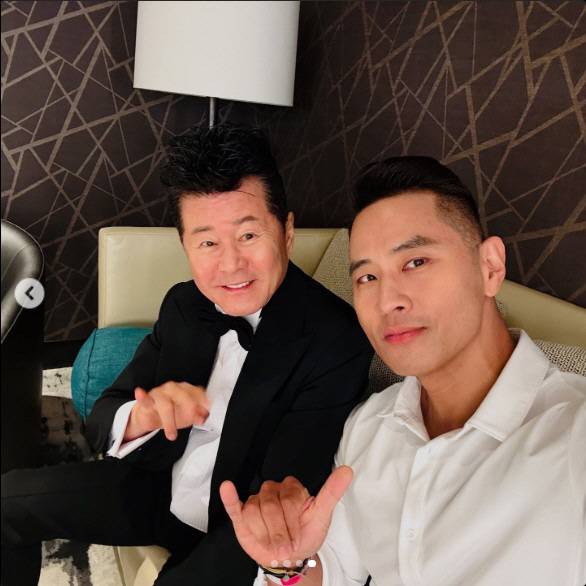 공개된 사진 속 유승준은 흰 셔츠에 깔끔한 스타일링을 하고 근육질 몸매를 뽐냈고, 태진아는 블랙 턱시도에 보타이를 매고 환한 미소를 지으며 여유로운 포즈를 취했다.