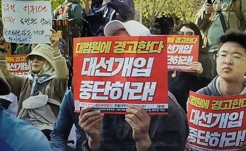 | ▲ 137차 촛불대행진 집회 137차 촛불대행진 집회 참가자들이 26일 오후 '대법원에 경고한다. 대선개입 중단하라'라는 손팻말을 들고 있다. |