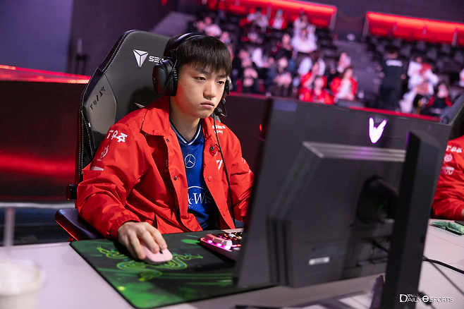 27일 오후 서울 종로구 그랑서울 롤파크 LCK 아레나에서 열린 LCK 4주 차 OK 저축은행 브리온과 T1의 경기서 '케리아' 류민석이 1세트서 뽀삐를 골랐다.