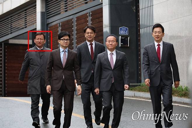 | ▲ 한동훈 국민의힘 비상대책위원장이 26일 오전 전직 대통령 박근혜씨의 자택에서 약 30분간 면담을 마친 뒤 윤재옥 원내대표, 김형동 비서실장, 유영하 변호사 등과 함께 걸어나오고 있다. |