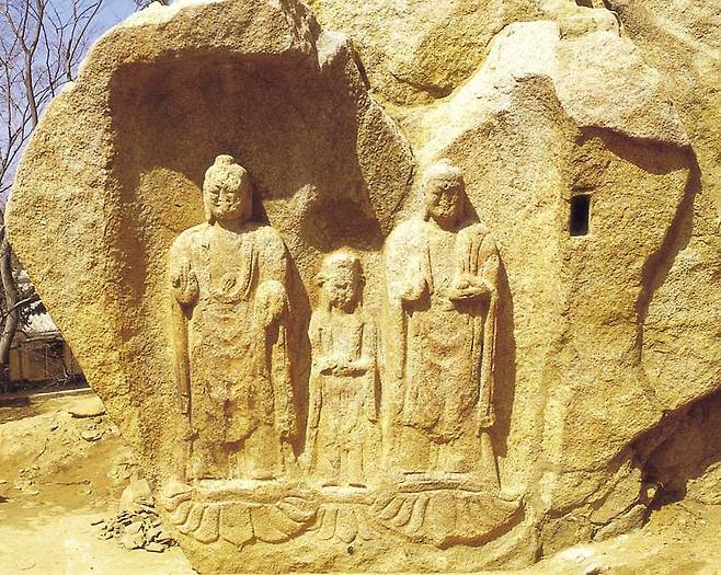 | ▲ 서산마애삼존불 '백제의 미소'라는 칭송을 받는 서산시 운산면 소재 마애삼존불. |