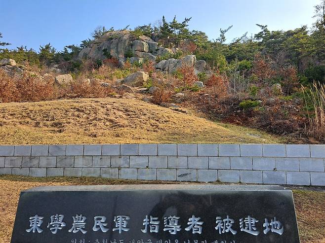 | ▲ 교장바위 1894년, 태안에서 붙잡힌 1백 수십 동학농민군이 여기서 교형과 장형 등으로 희생당했다 해서 이름이 '교장(絞杖)바위'가 되었다는 설이 유력하다. 일본인 교장 선생의 고마움을 기려 '교장(校長)바위'라는 주장도 있다. |