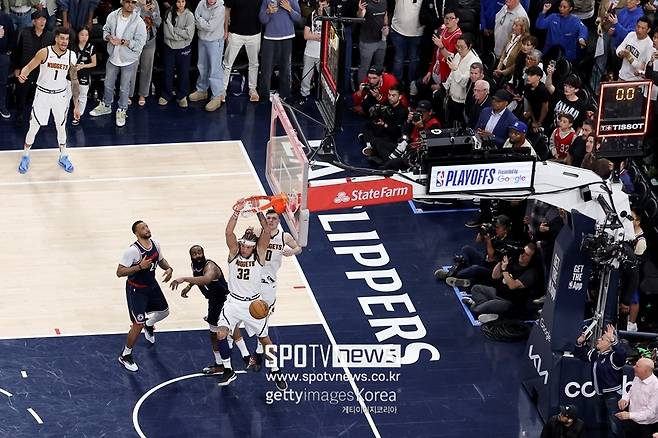 이후 몇 차례 공방전 끝에 99-99에서 덴버 마지막 공격이 전개됐다. 외곽에서 니콜라 요키치가 공을 잡자 클리퍼스는 두 명의 수비수가 붙었다.
