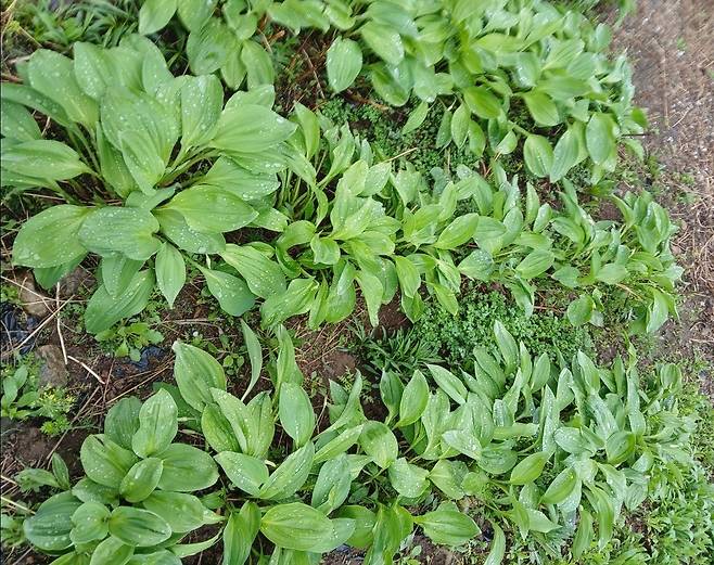 | ▲ 남동생이 가꾸는 명이나물밭 동생이 명이나물 밭 사진을 찍어서 보내주었다. 강원도 청정구역에서 자란 명이나물이라 깨끗하다. |