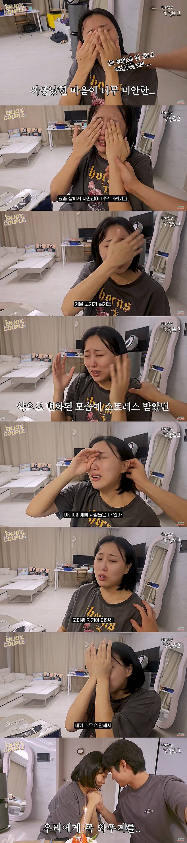 손민수는 "귀엽다"면서 "사랑해 자기야. 우리 힘내자. 자기가 최고로 예쁘고 최고로 사랑스럽다. 그러니까 더 자존감 높게 해도 된다"며 위로했다. 결국 남편의 위로에 임라라는 펑펑 눈물을 쏟았다.