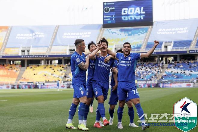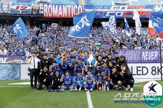 [수원=스포츠조선 전영지 기자]"오늘 경기 제일 잘한 선수는 이규성! 김지현, 이규성 등 국내 선수 골 기쁘다."