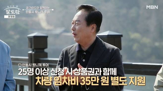 안동 시장은 "안동 간고등어랑 문어를 안동댐에서 잡는다"고 유머를 시도했지만, MC들이 "댐에서 고등어를 잡냐"고 진짜 놀라 실패로 돌아갔다. 여행비에 대해선 "25명 이상 신청 시 상품권 만 원과 함께 차량 임차비 35만 원도 별도로 지급한다"고 밝혔다. 문화해설사, 전통시장 해설사도 동행할 수 있다고.