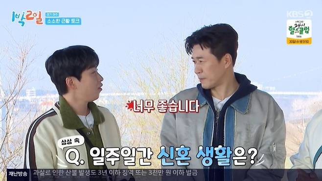 이준은 '1박 2일'에 초대하자고 했고, 조세호는 "오는 건 좋은데 와서 뭘 하죠?"라고 의문을 품었다. 김종민이 "구경"이라고 하자 조세호는 "형수님도 같이 오자"고 했다. 딘딘이 와이프 특집을 하자고 하자 문세윤은 고개를 젓기도.