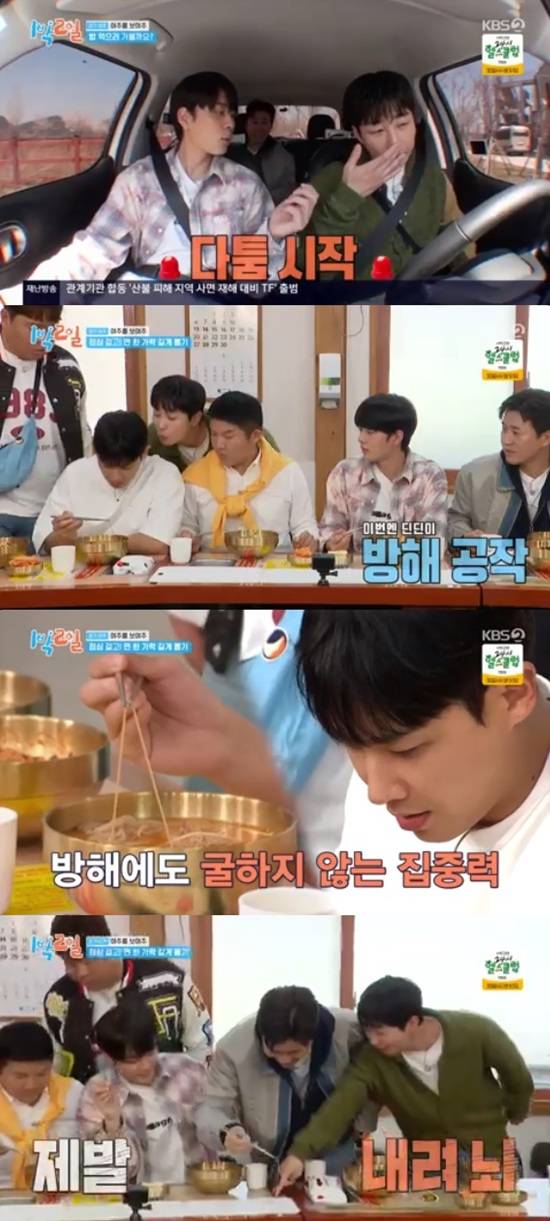 27일 방송된 KBS 2TV '1박 2일 시즌4'에서는 김종민, 문세윤, 조세호, 이준, 딘딘, 유선호가 경기 여주로 떠나는 모습이 전파를 탔다.