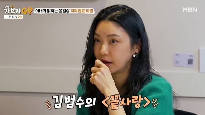 아내는 작곡가 남편의 장점에 대해 "저작권료?"라고 밝혔다. 저작권료 관리는 아내가 다 하고 있다고. 아내는 "저작권료가 많이 들어왔다고 해서 펑펑 써야겠다고 생각 못한 게 다음 달 수입이 어떨지 모르니까"라고 덧붙였다. 아내는 효자곡에 대해 "전 의외였던 게 김범수의 '끝사랑'이다. 엄청 히트곡 느낌은 아니었는데, 저작권료 순위를 보니까 꽤 위에 있더라. 김연자의 '아모르파티', 이은미의 '애인 있어요', 김범수의 '보고 싶다'는 늘 상위다"라고 밝혔다.