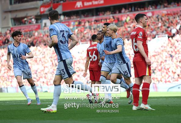 예상을 깨고 토트넘이 선제골을 넣었다. 전반 12분 제임스 매디슨의 코너킥을 받은 솔란케가 정확한 헤더 슈팅으로 리버풀의 골망을 갈랐다. 우승을 앞두고 축제 분위기를 만끽하던 리버풀 홈 팬들에게 제대로 찬물을 뿌린 한 방이었다.