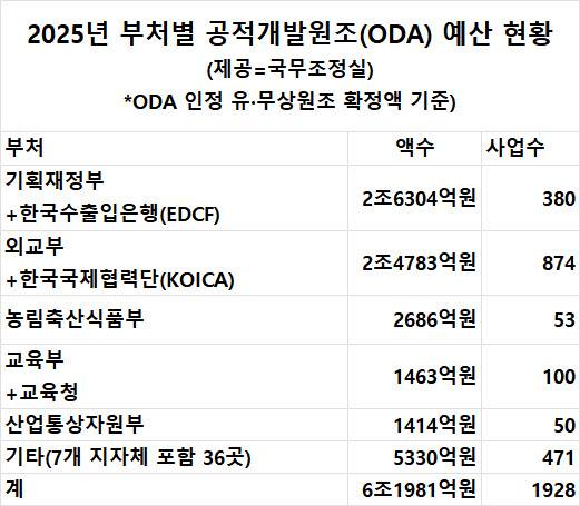 실제로 우리나라는 올해 ODA 예산 규모를 6조 5000억원까지 늘리며 경제협력개발기구 개발원조위원회(OECD DAC) 32개국 중 13위로 올라서는 등 지원을 확대하고 있지만, 전문가들은 국제사회에 내세울 만한 두드러진 성공모델을 갖추지 못했다고 보고 있다. 범정부 차원의 전략 없이 여러 부처와 지방자치단체가 2000개 안팎의 크고 작은 사업을 파편적으로 추진하는 탓이 크다.