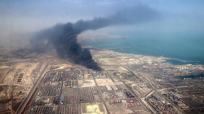 ▲ 이란 남동부 반다르압바스 지역 샤히드라자이 항구 폭발 현장