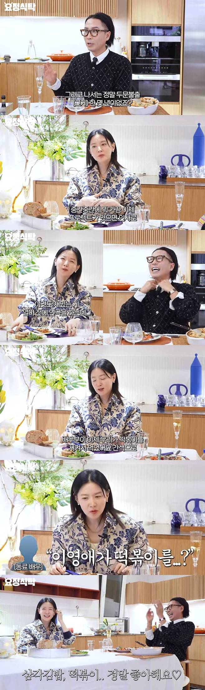 동료 배우가 '떡볶이를 드세요?' 하더라. 너무 놀라면서"라며 "'전 인생이 인스턴트에요'라고 말해 웃음을 자아냈다. 자녀들에게 양평에서 유기농을 먹였던 이영애의 반전매력이 돋보였다.