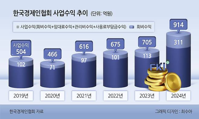 한편, 한경협의 사업수익은 ▷회비수익 ▷임대료수익 ▷관리비수익 ▷사용료부담금수익으로 구성된다.