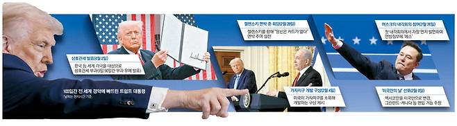 취임 100일을 1주일여 앞둔 지난 24일 기준 트럼프 대통령이 서명한 행정명령은 139개에 달한다. 그가 취임 후 전 세계를 충격에 몰아넣었던 결정적 순간을 정리해본다.