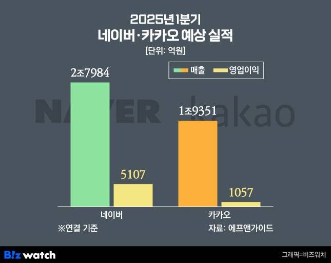 국내 양대 플랫폼 기업인 네이버와 카카오 실적이 크게 엇갈릴 전망이다.