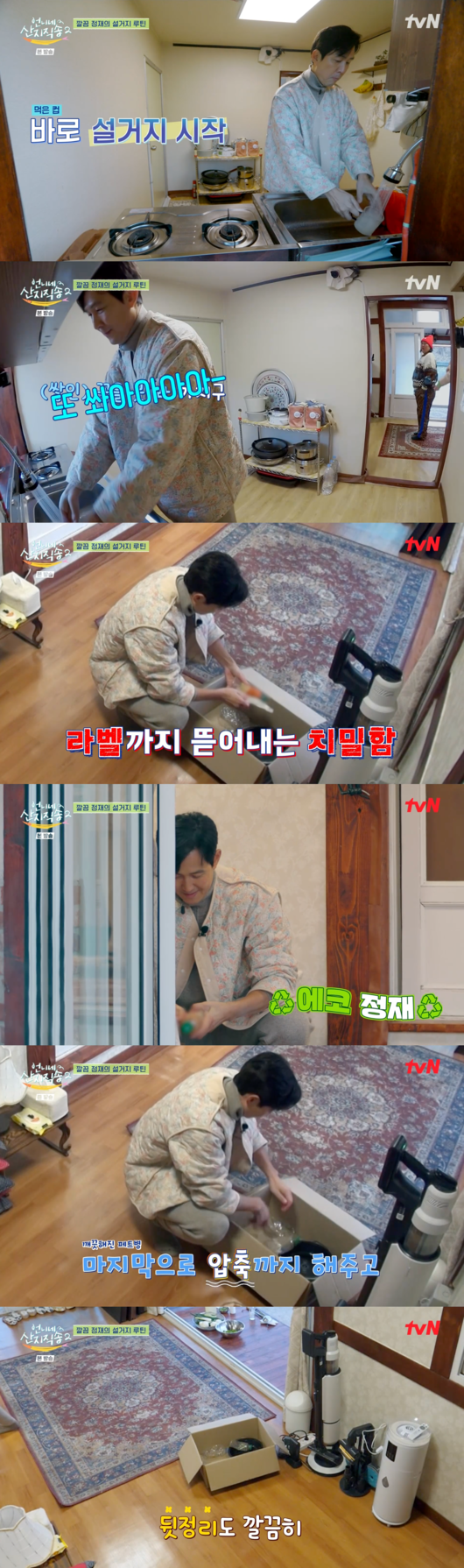 이정재, 혼자 사는 男의 깔끔함…"설거지는 바로, 분리수거도 꼼꼼히" ('산지직송2') [순간포착]
