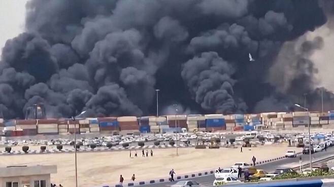 거대 불기둥 치솟더니 '펑'…이란 항구서 컨테이너 폭발