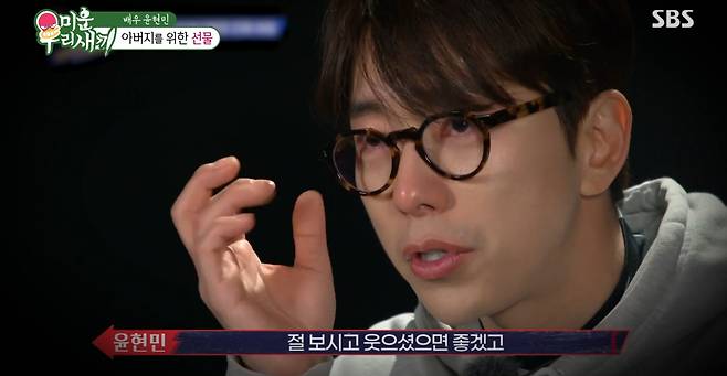 윤현민은 "아빠 병간호할 때 내가 2년 일을 쉬지 않았냐 그러면서 얘기를 진짜 많이 나눴다. 서울대병원 가서 항암 할 때. 아빠가 그런 얘기를 하더라. 너무 센 사람이라 미안하다는 말을 못 하지 않냐. 그때 엄청 나한테 미안했다고 하더라"라고 말해 먹먹함을 더했다.