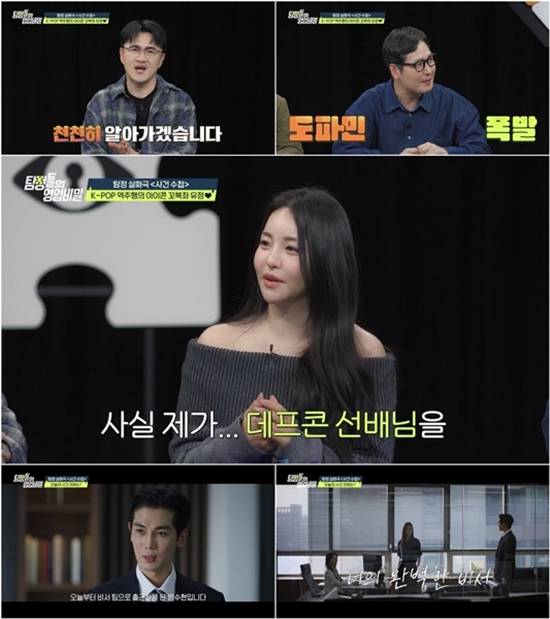 그러나 '탐정들의 영업비밀' 스튜디오를 찾은 유정은 "사실 데프콘 선배님을 너무 보고 싶었다"라며 데프콘을 향한 관심을 드러낸다. 이에 데프콘은 "심장이 나댄다"라며 수줍어해, 보는 이들의 도파민을 제대로 폭발시킨다.