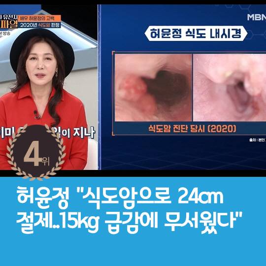 4위 : '허윤정 "식도암으로 24cm 절제..15kg 급감에 무서웠다"